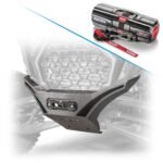 The bumper is constructed from laser-cut steel that is formed and welded to provide the ultimate protection to the front end of your Polaris Pro R / Turbo R /Pro S. The winch plate was built around the Warn Axon 55-S Powersports 5500lbs winch (P/N 101150) but almost any UTV winch will fit this bumper. The winch installs on a dedicated winch plate and the bumper face attaches to the assembly to provide the ultimate protection for the front end of your vehicle and your winch.