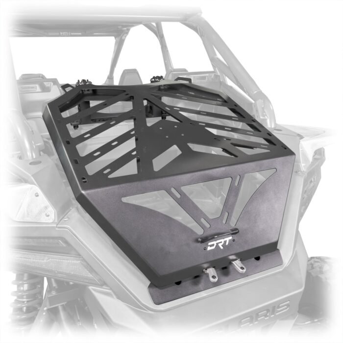 This adventure rack features a boxed design with tons of tie-down point options, heavy-duty latches, and gas struts to make accessing your storage easy. When used as a tire carrier, the rack will hold up to a 35" tire securely to keep you on the trails and running hard. The DRT Motorsports Polaris Pro Series Tire Carrier/Adventure Rack V2.0 comes powder coated in DRT's signature sand black finish with high-grade hardware and is a complete bolt-on installation.