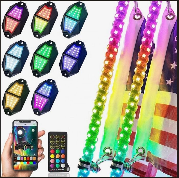 Transform your UTV with UTV SHOP’s 12-piece RGB rock lights. Built with durable aluminum and IP67 waterproofing, they handle mud, rain, and rough trails with ease. Choose from 366 colors and control them via Bluetooth or the included remote for endless customization. Perfect for off-road adventures or showing off your ride.