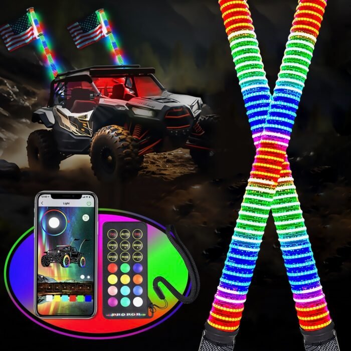 UTV Shop RGB Fangs for Maverick R feature Bluetooth-controlled full RGB lighting with built-in turn…